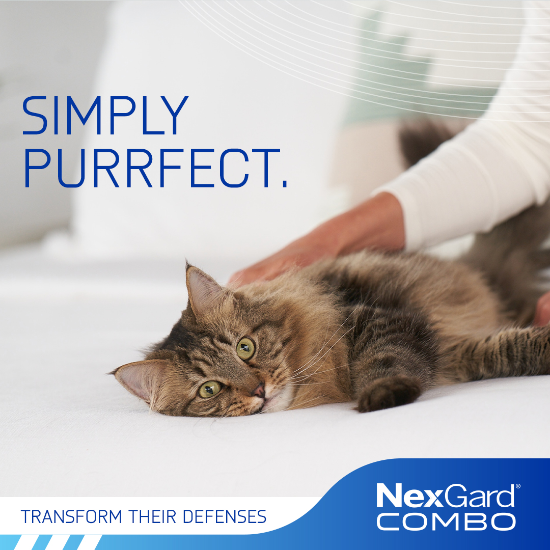 Good news - instead of wrangling your cat a few times each month to give them all the protection they need against internal and external parasites, you can transform their defenses with a SINGLE product - new, one-and-done NexGard® COMBO.